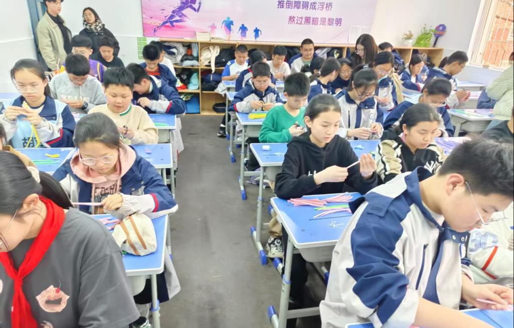 在校园生活中,创意与手工活动能够激发学生们的创造力和动手能力,丰富学生们的课余生活,为了让同学们在紧张的学习环境中放松心情,千千结艺社于2025年3月27日16点—18点在浉河中学面向七年级十九班全体同学举办了一场主题为“指尖生花,扭出创意”扭扭棒花卉制作活动。与同学们一起扭出创意,让扭扭棒在指尖绽放花样。