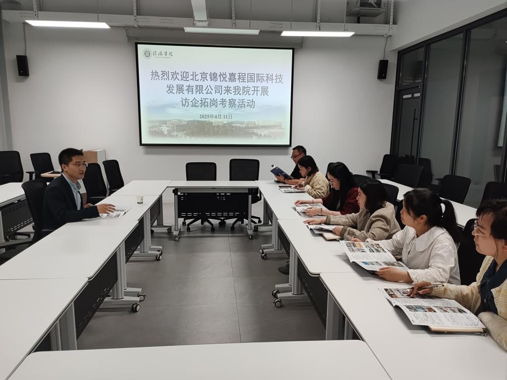 为积极响应教育部关于高校毕业生就业工作的决策部署,深入落实“访企拓岗促就业”专项行动,进一步加强校企合作,拓宽毕业生就业渠道,4月11日上午,在外语楼316会议室,党总支副书记程娇炎及学院学工团队与北京锦悦嘉程国际科技发展有限公司负责人刘颂进行座谈,就深化校企合作、推进人才培养与就业等事宜展开沟通交流。