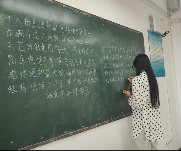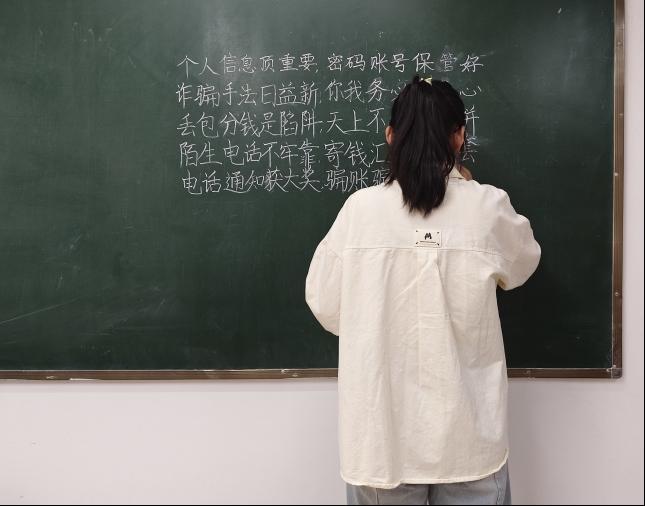 4月15日中午,“挥毫书反诈,落笔筑防线”三笔字大赛在理工楼501、502、503、504圆满举行。此次比赛推陈出新,将反诈主题融入传统笔墨。旨在弘扬和传承传统书法文化,增强文化自信的同时增强反诈意识,避免财产损失。