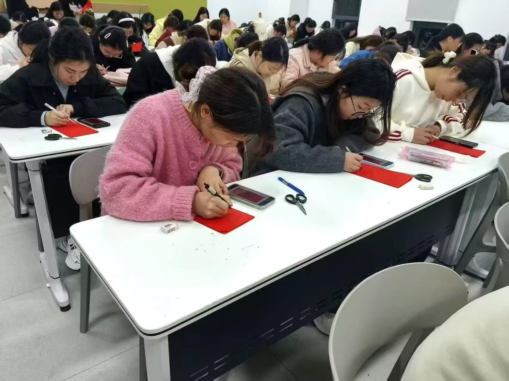 活动最后,辅导员老师为每位同学分发剪纸工具,让同学们自由创作,尽情发挥想象力,创作出各自心仪的作品并进行展示,班级凝聚力得到了进一步提升。