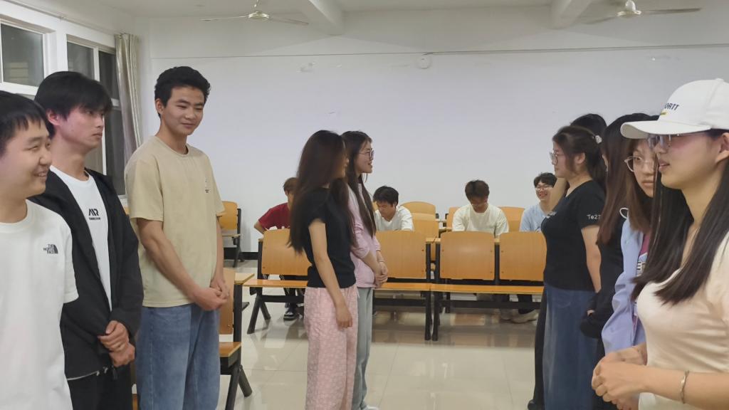 “表情包大作战”将情绪释放推向高潮。同学们挑战“无声传递”表情包,挑眉、耸肩、夸张瞪眼等表情在队列中层层传递,这种非语言沟通方式,让许多习惯内敛表达的同学找到了新的情绪出口。模仿美少女战士的魔性惩罚,更让全场笑出眼泪,有效缓解了学业压力带来的焦虑情绪。