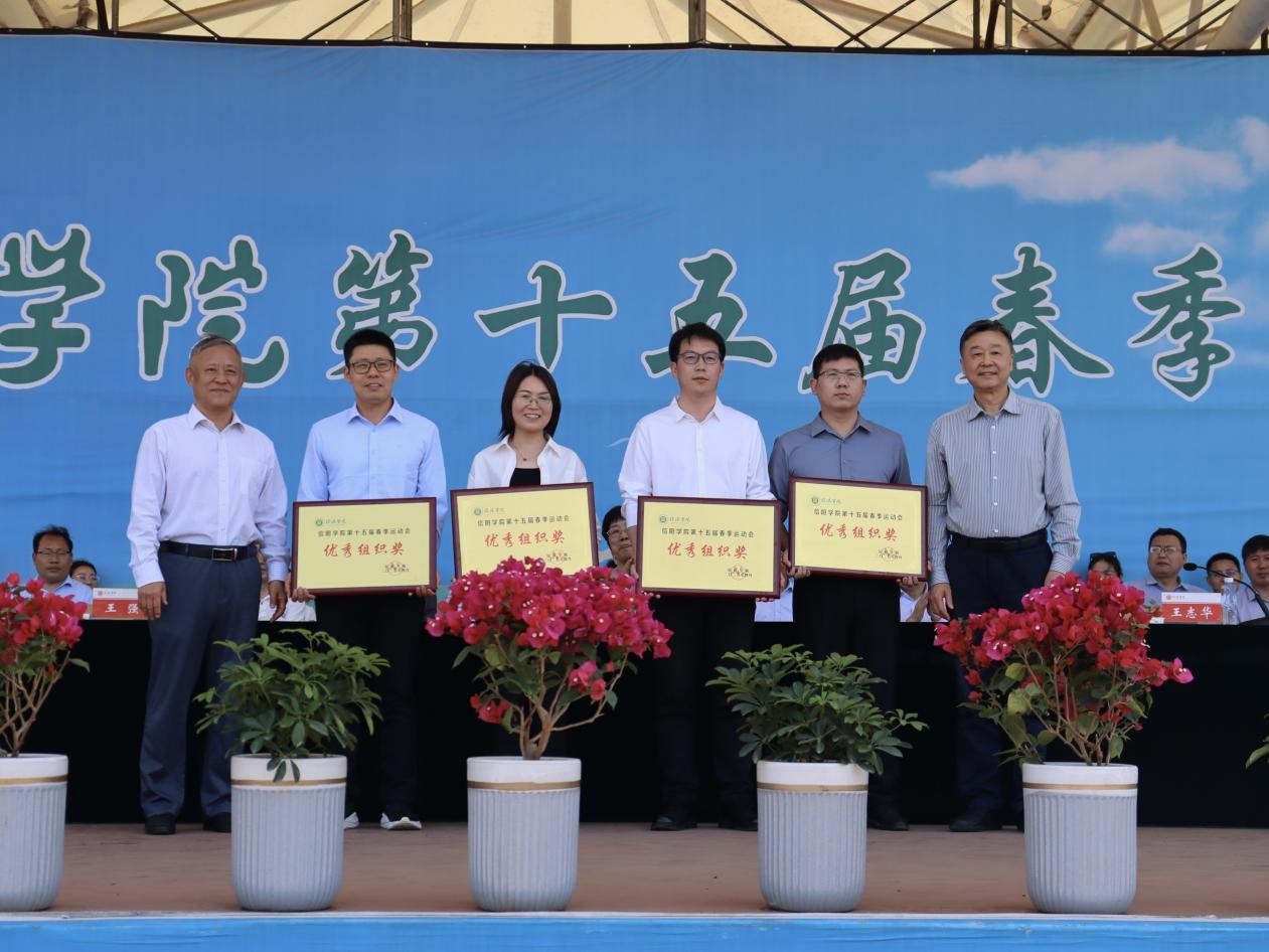 青春赛场,活力飞扬。4月18日,信阳学院第十五届运动会于学校田径场圆满落下帷幕。音乐学院作为本次校运会的主办方之一,共有16位师生参加了开幕式,25位教师和63位同学参加了运动会中的田赛和径赛项目。师生运动员们凝心聚力、锐意进取,在竞技场上展现了别样青春风采,为学院争得了多项荣誉。