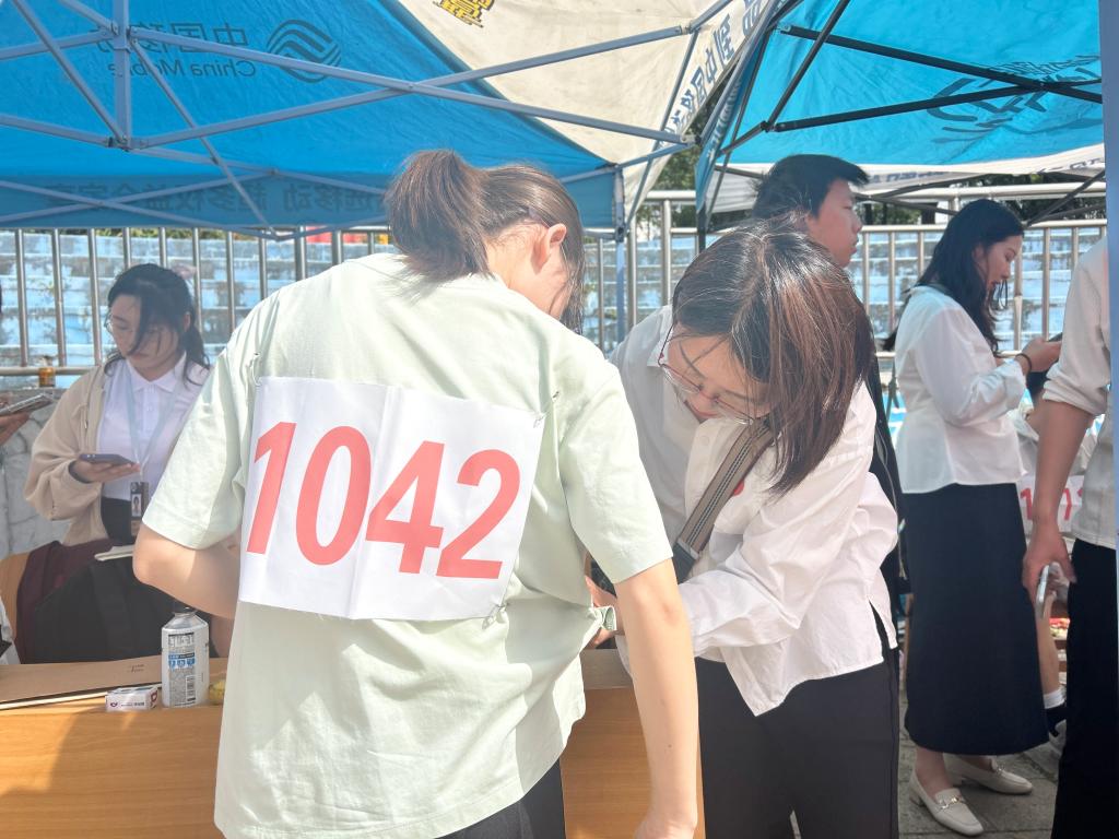 巡查医疗点、物资处,叮嘱后勤团队“全力保障每一位师生的需求”;学院领导老师更是化身“最强应援团”,党总支书记刘颖方贴心为运动员佩戴号码簿,赛前打气加油,赛后暖心慰问。从晨曦微露到暮色降临,他们的身影始终与青春同频,用行动诠释“护航者”的责任与担当。
