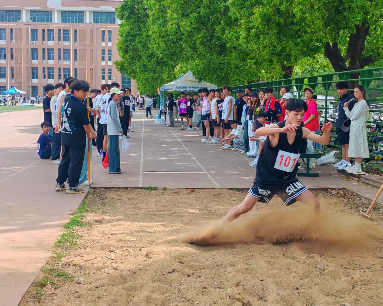 “铅”钧一发,沉重的铅球绘出一个完美的抛物线,最后沉重落地,运动员们用力量征服重力的阻碍,抛出亮眼的成绩。赛场上激烈的比赛激起呐喊的声潮,观众席加油助威的声音不绝于耳,广播朗诵的加油稿令人心潮澎湃,热血沸腾。
