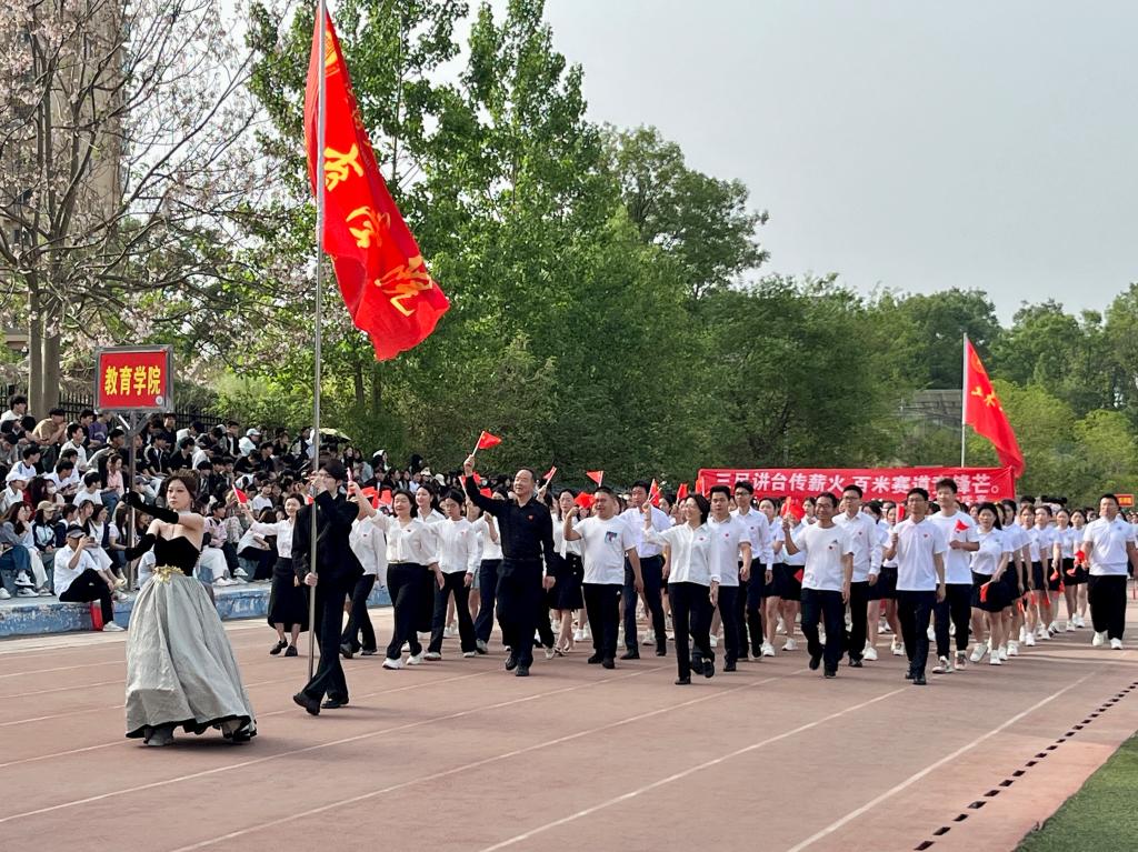 春光作序,万物和鸣。信阳学院第十五届春季运动会盛大开幕。党总支书记刘颖方、教学副院长段海丹、赵国权教授、青年教师代表和同学们共同组成的师生方阵数百人齐赴开幕式。鲜袂迎风扬,师生同频,共赴这场别开生面的热血之约。
