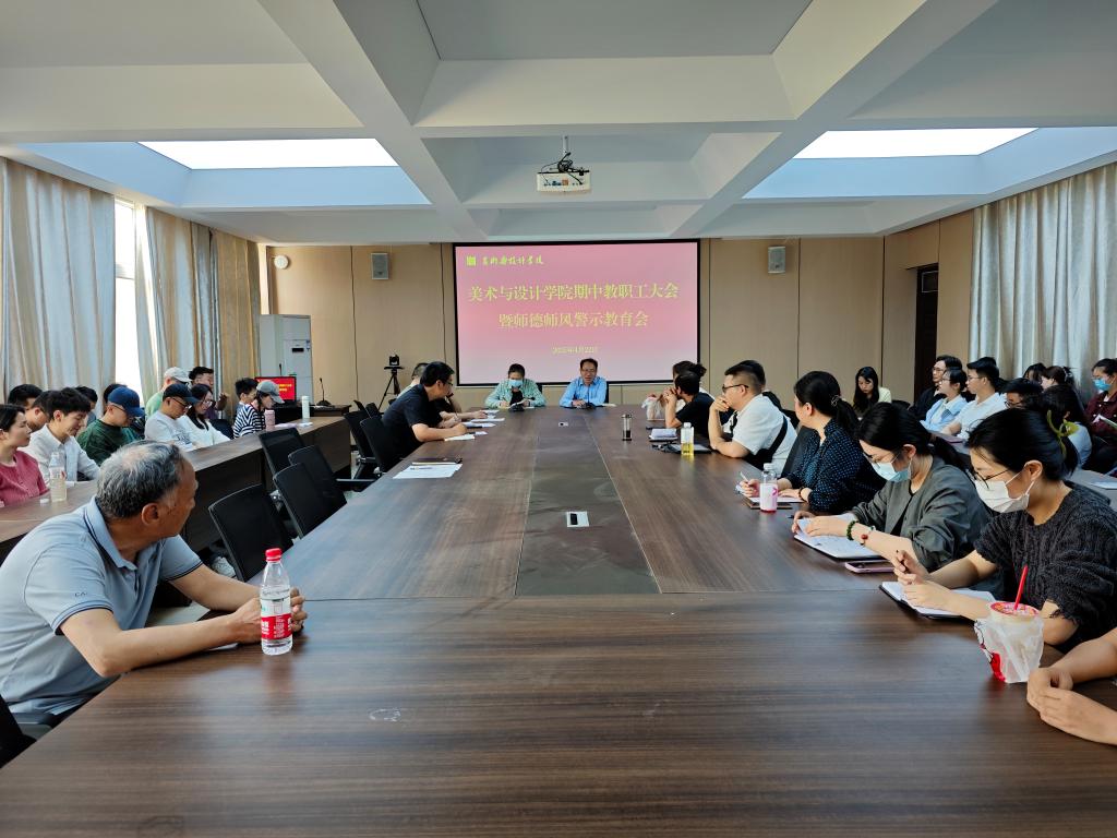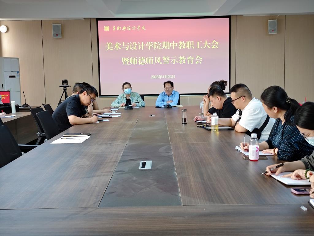 4月22日,美术与设计学院在艺术楼215会议室召开期中教职工大会暨师德师风警示教育会,院长张瑞瑞、党总支书记郑山峰、教学副院长王伟及全体教师参加会议。会议由郑山峰主持。