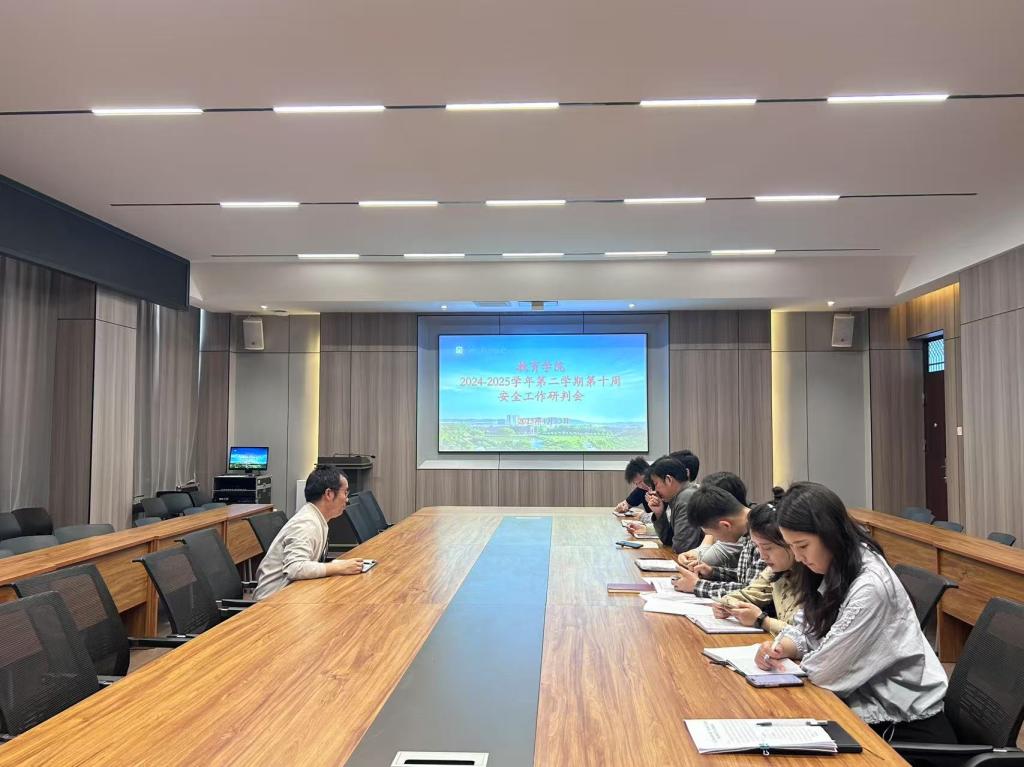 为进一步细化学生管理举措,强化重点时段安全稳定工作,4月23日上午,教育学院在社科楼109会议室召开了2024—2025学年第2学期第十周学生安全工作例会。学工干事胡超及全体辅导员参加了会议。