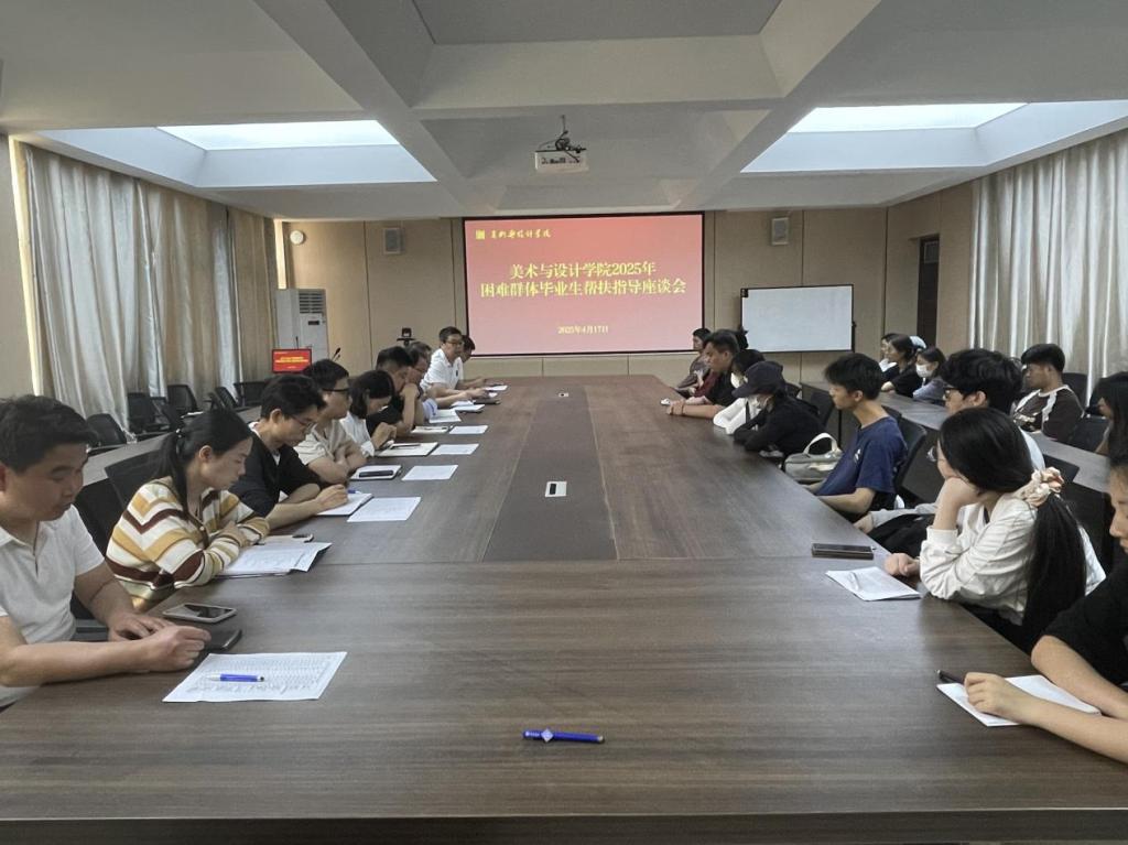 为扎实推进特殊群体毕业生就业帮扶工作,切实提升学生求职竞争力,4月17日下午,美术与设计学院在艺术楼215会议室召开2025届特殊群体毕业生帮扶指导座谈会,学院领导班子成员,毕业班辅导员、帮扶教师以及全体帮扶学生参会。会议由学工干事秦金峰主持。