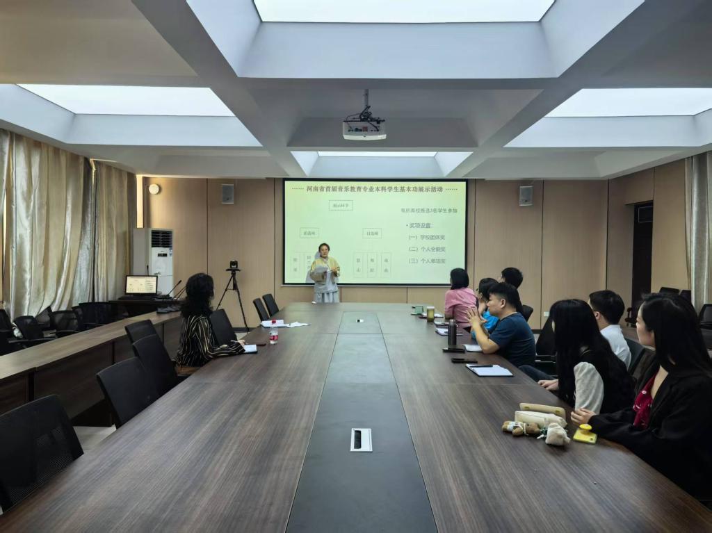 4月28日,音乐学院于艺术楼215会议室召开师范专业基本功提升研讨会暨期中教学工作会。音乐学专业负责人、教学办人员、全体教研室主任、骨干教师参会。副院长杨辉出席会议并讲话。