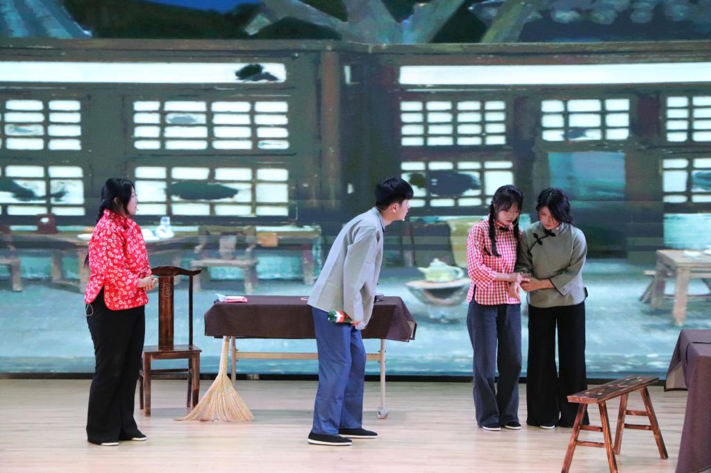 4月25日和27日晚,由馨雅·华艺话剧社主办的《骆驼祥子》剧目分别在南湖校区113演播厅和浉河校区音乐厅进行汇报演出。全体演职人员以精湛的表演和深刻的艺术表达,为观众呈现了一场融合经典文学与现代表演美学的视听盛宴,现场座无虚席,掌声雷动。学校党委办公室主任娄琪、学生处处长余婷婷、招生就业处处长柳琳、资产处处长谭川、美术学院党总支书记郑山峰、数学与统计学院党总支书记高昌慧、马克思主义学院党总支书记陈金强、土木工程学院党总支书记徐远东、外国语学院教学副院长李静、土木工程学院教学副院长杨子泉莅临现场观看。文学院院长张凌江、党总支书记李赟携部分师生以及松树坦小学学生共计1200余人观看了本次汇演。活动由杨子萱、刘展滔、贾民卓主持。
