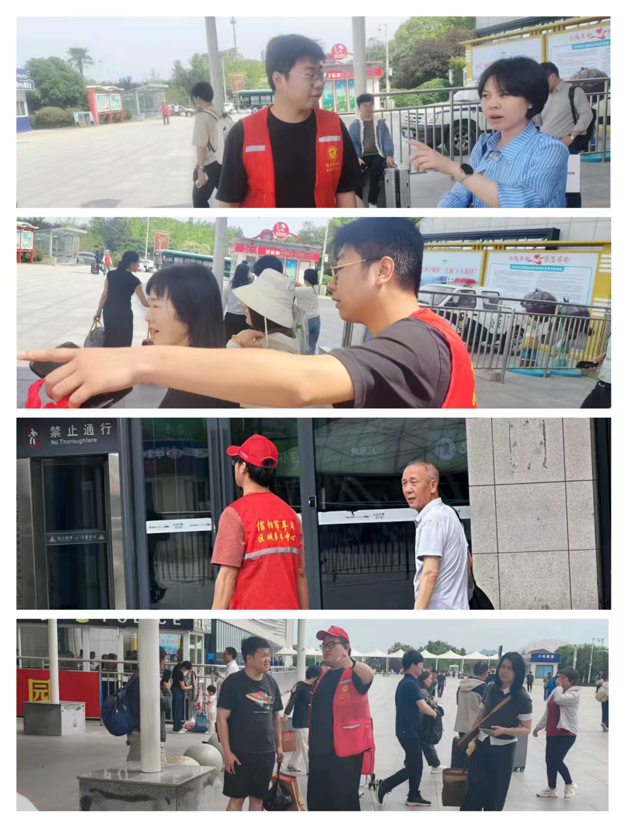 活动期间,志愿者们身穿红色马甲,活跃在信阳东站的各个区域。在进站口,他们向携带大件行李的旅客伸出援手,帮忙搬运行李;面对迷茫的旅客,志愿者们耐心指引候车区域、售票窗口位置,详细解答车次、换乘等问题;在出站口,他们为旅客提供城市交通、旅游景点等方面的咨询服务,让初次到信阳的旅客感受到这座城市的热情。