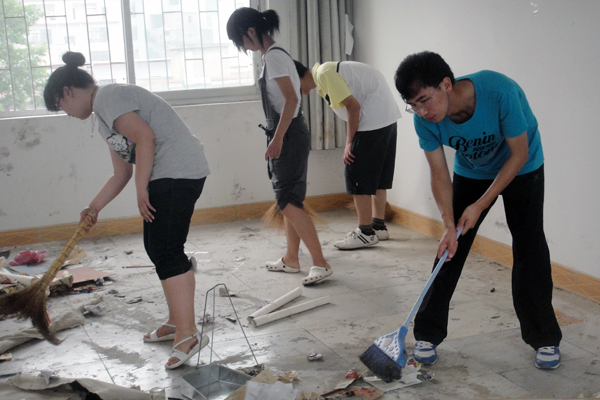 本次活动主要是对艺术系毕业班画室进行了卫生大扫除活动。在活动过程中,同学们不分你我,相互帮助。虽然六月的天气很炎热,但是同学们却干劲十足,提水、扫地、擦窗、拖地,每个环节都一丝不苟的完成。虽然大家汗流满面,衣服沾满颜料,但从他们脸上闪现的笑容,可以看出此次活动给他们带来的快乐与充实。此次活动是艺术系学生党员自觉践行“两创两争”活动的具体体现。