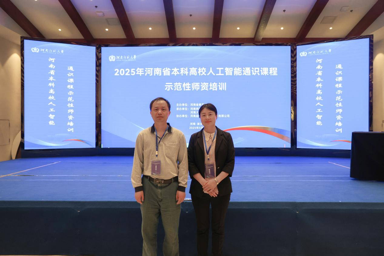 为加速推进教育数字化转型进程,深化人工智能通识课程体系建设,全面提升教师人工智能素养与教学实践能力,5月17日至18日,大数据与人工智能学院人工智能教研室张冬松博士与赵琳老师前往新乡,参与河南省本科高校人工智能通识课程示范性师资培训会。培训期间,两位老师与省内多所高校教师齐聚一堂,共同探索人工智能通识教育的创新发展路径。