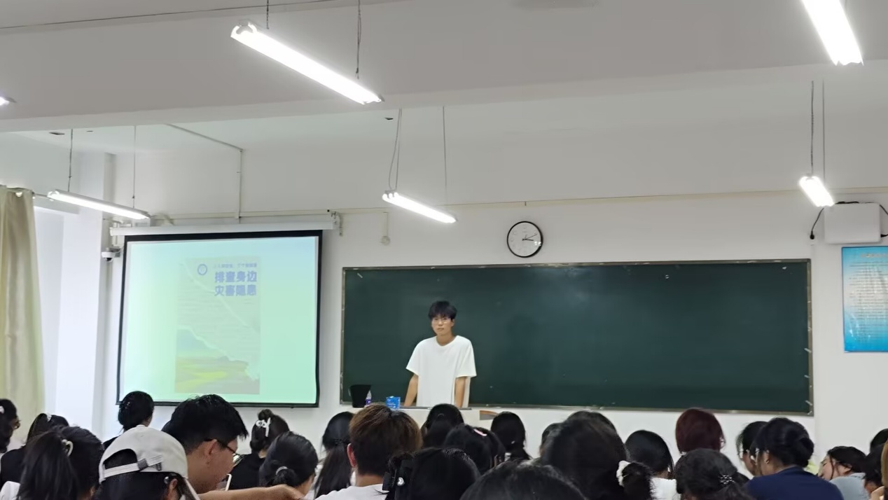 活动首日,学院组织全体学生集中观看《防灾减灾科普教育专题片》。视频通过模拟地震、火灾、电气事故等突发场景,结合高校真实案例,系统讲解灾害预防、应急逃生及自救互救技能。观看结束后,各班级围绕实验室安全、宿舍用电规范等议题展开讨论,学生们通过分享亲身经历,进一步深化对安全隐患的认知。