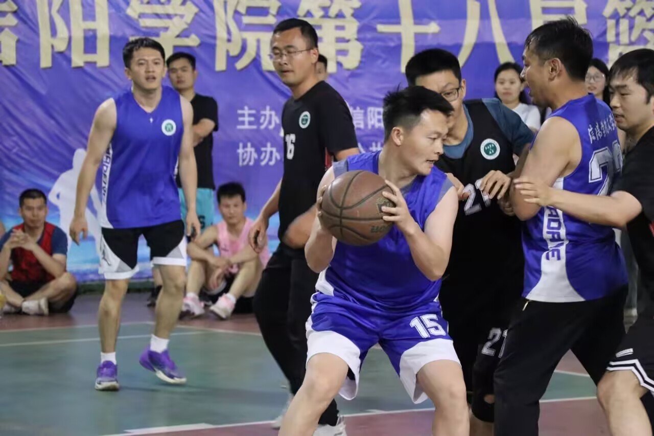 为丰富我校师生课余文化生活,激发师生运动热情,培养师生终身体育的意识,我校于5月9日—5月17日举行信阳学院第十八届篮球比赛。本次比赛由校工会、学校体育运动会委员会主办,公共体育教学部协办,于我校篮球场开展。5月20日晚举办闭幕式,信阳学院副校长王志华、部分职能部门负责人和各学院党总支书记出席了活动。文学院分别组成教职工组和学生组两支参赛队伍。