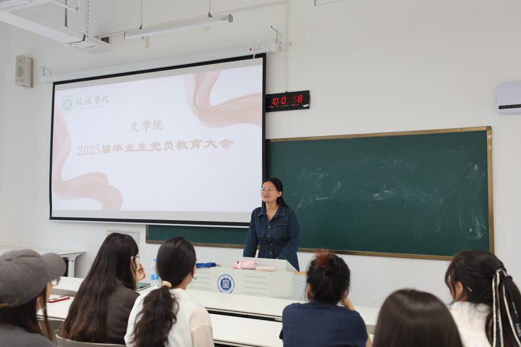 为进一步提高文学院毕业生党员政治理论素养,确保党关系顺利转接,文学院于5月23日上午在南湖校区教一楼313召开2025届毕业生党员教育大会,文学院党总支书记李赟、辅导员湛世霞老师出席此次活动,学院全体毕业生党员参加。