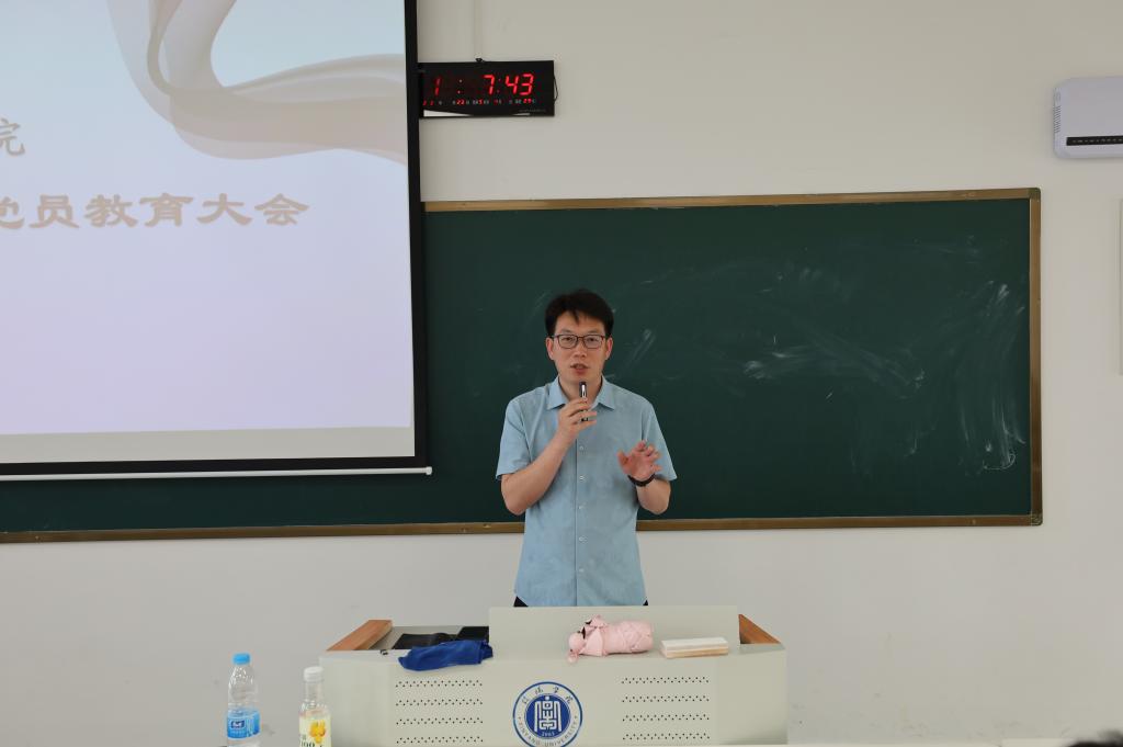 党总支书记李赟进一步强调了党组织关系转接和填写党员材料的重要性,并要求同学们要牢记自身发展各阶段的时间、介绍人等信息。对于未来的发展,李赟书记结合身边的案例,希望全体毕业生党员能够始不忘初心、牢记使命,积极发挥党员的先进性、创造性,不断向上向好,为党旗增辉。同时,他要求同学们在今后工作与生活中要严格遵守党的章程和组织纪律,勿触红线,并承担好应尽的责任,脚踏实地的走好每一步。