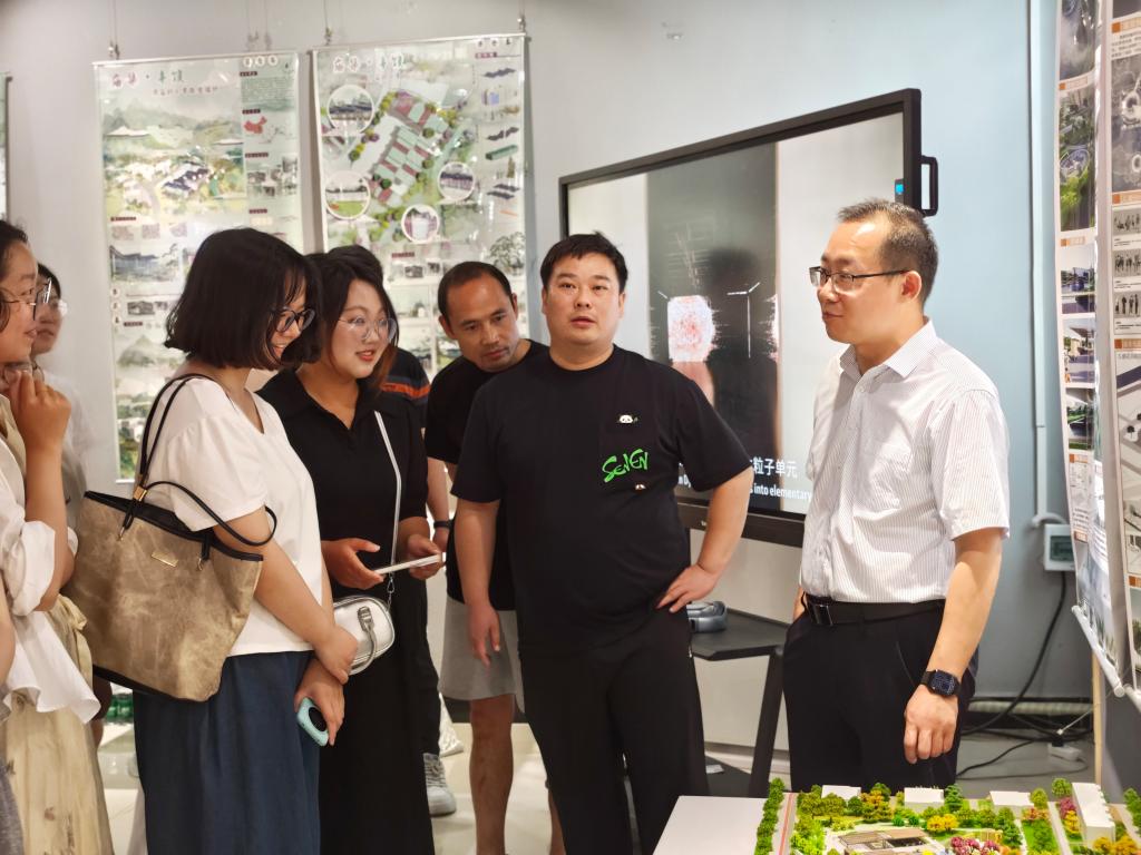 5月22日,信阳师范大学美术与设计学院副院长董建义带领师生100余人来美术与设计学院就毕业设计开展专题交流。学院院长张瑞瑞、党总支书记郑山峰、教学副院长王伟以及专业负责人陪同参观了2025届毕业生优秀作品展。