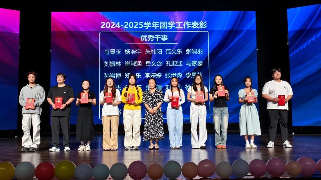表彰环节中,学工干事田媛、团总支书记胡涛、辅导员范学琴分别为2024—2025学年团学工作、学校第十五届春季运动会、第一届数学文化节中表现优异的个人及部门颁发证书,希望同学们学习先进,助力学院工作更好发展。