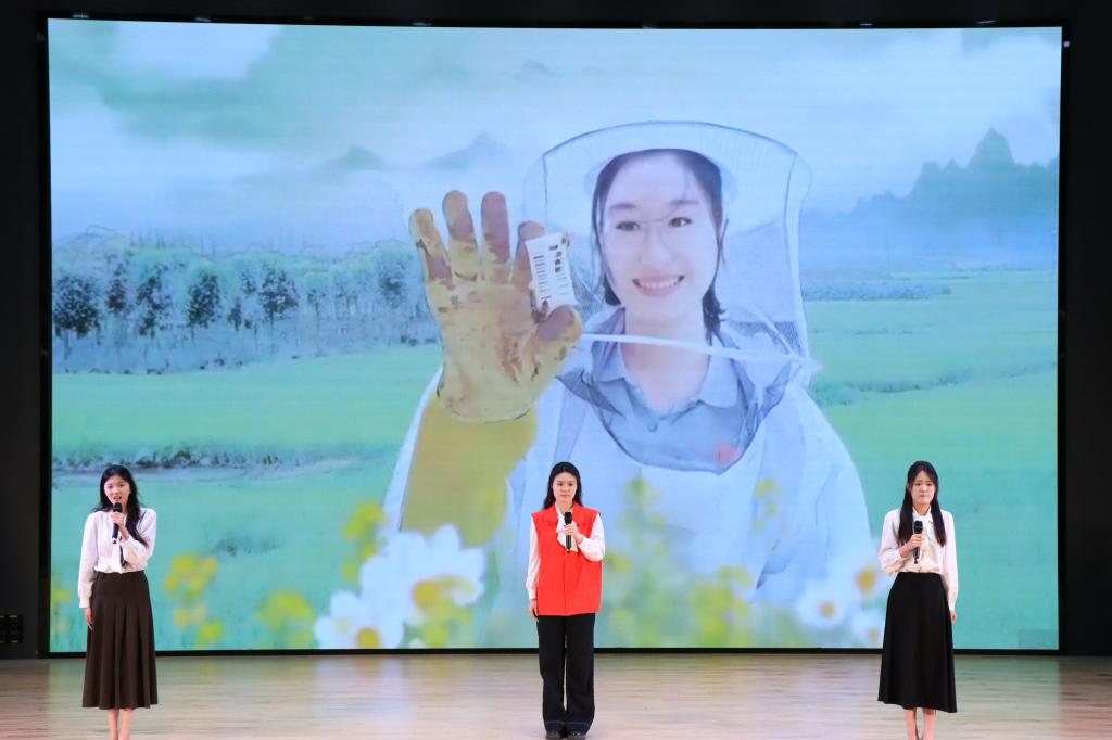 李云鹤、贾赵然、刘思麟朗读的作品《以你为镜》以艺术化的形式激发广大学子以黄文秀同志为榜样,在新时代的长征路上做出更大的贡献,她那“不获全胜,决不收兵”的毅力令我们敬佩;杨润朗读的作品《秋天的怀念》以史铁生的故事展现了母爱的深沉与伟大,引发听众对生命的思考;赵素娅、曾心怡、杨豪的《百年交响》展现了中国共产党的光辉征程,让听众感受到百年历程的波澜壮阔。