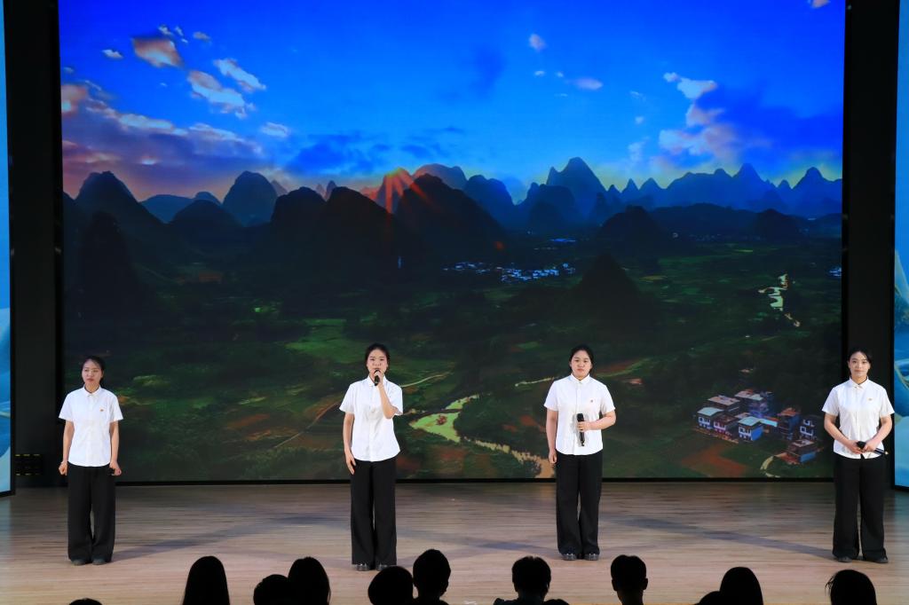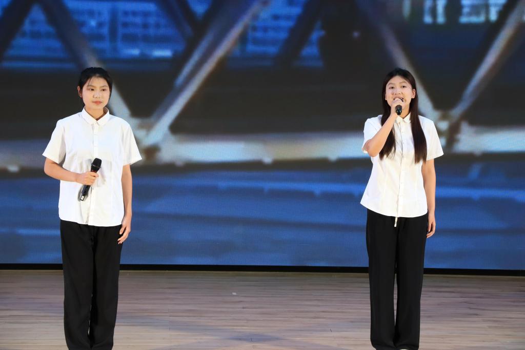 在《我的祖国》朗诵中,苏建婉、吕沛璇用饱满的热情将祖国的壮丽山河、悠久历史与灿烂文化描绘出来,流露出深深的民族自豪感;通过万云逸声情并茂的朗读,《岳阳楼记》中岳阳楼、洞庭湖等不同风光场景在听众们的脑海中再现;何京莹、王丽、秦惜妍、韩璐瑶通过对《毛泽东诗词选篇》的朗读,让观众们从诗词中感受到了伟大领袖毛泽东不怕艰难险阻的乐观主义精神以及坚定的革命信心。