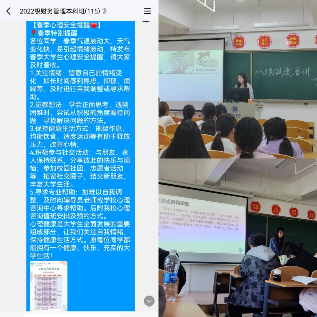 本次心理健康月期间,辅导员们围绕“培育积极心态,增强心理韧性”主题,为每个班级精心召开了心理健康教育班会。老师们化身贴心的“心灵充电站站长”,结合同学们日常学习、生活中的常见困扰,通过生动鲜活的案例分享实用方法。从压力调节、情绪管理,到人际关系处理,老师们倾囊相授,或是教授快速放松的呼吸技巧,或是引导大家用积极的思维方式看待问题。在互动交流环节,老师们更是耐心解答同学们的疑问,帮助大家掌握保持良好心态的诀窍,为同学们的心灵注入满满能量,助力大家以更积极乐观、昂扬向上的姿态勇敢面对成长中的挑战。