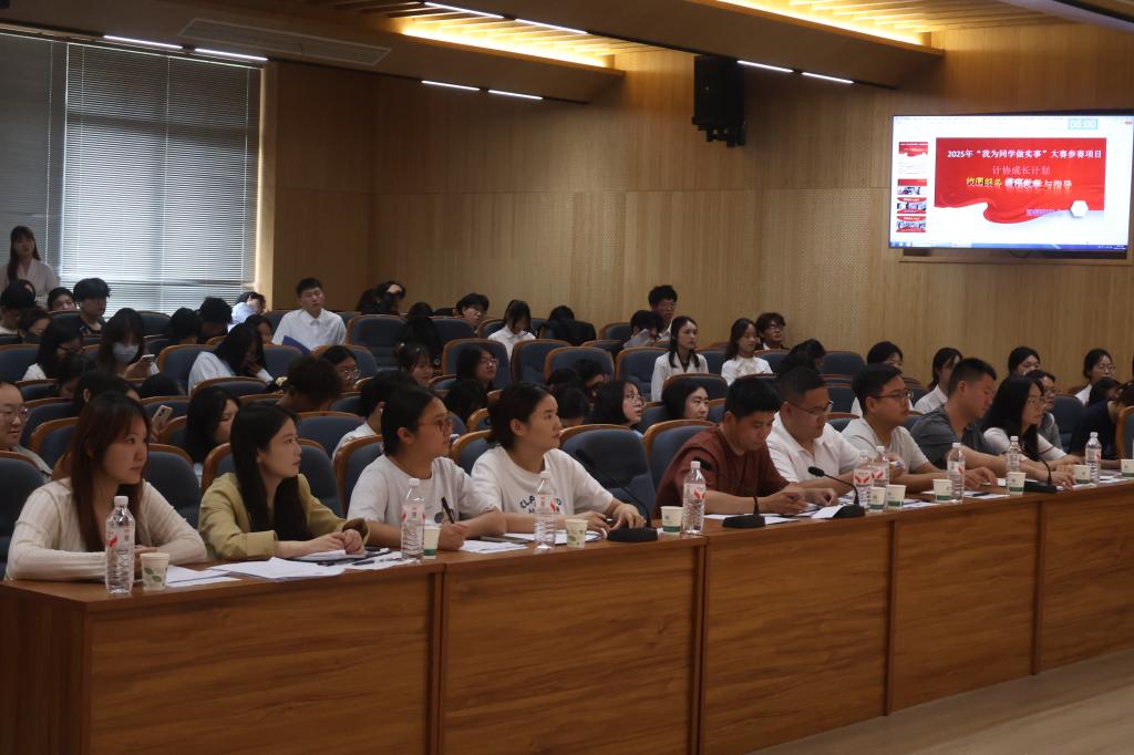 为全面学习贯彻习近平新时代中国特色社会主义思想,深入贯彻落实党的二十大精神,进一步提升我校共青团引领力、组织力、服务力,促进新时代新征程我校共青团工作高质量发展,5月27日下午,团委在图书馆101报告厅举办2025年度“活力杯”共青团基层基础工作大赛“我为同学做实事”项目大赛、活力社团大赛决赛,邀请各学院团总支书记担任评委。