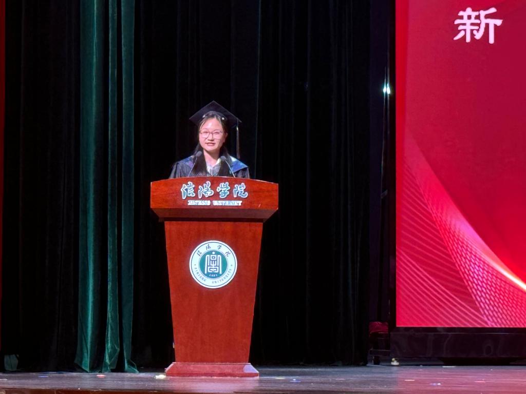 教师代表李夏菲老师鼓励毕业生们向上攀登、向新发力,践行“锐意进取、追求卓越”的信院精神。希望每位学生都能够不忘初心,坚守理想,在教育的舞台上绽放光芒,为教育事业贡献自己的力量。