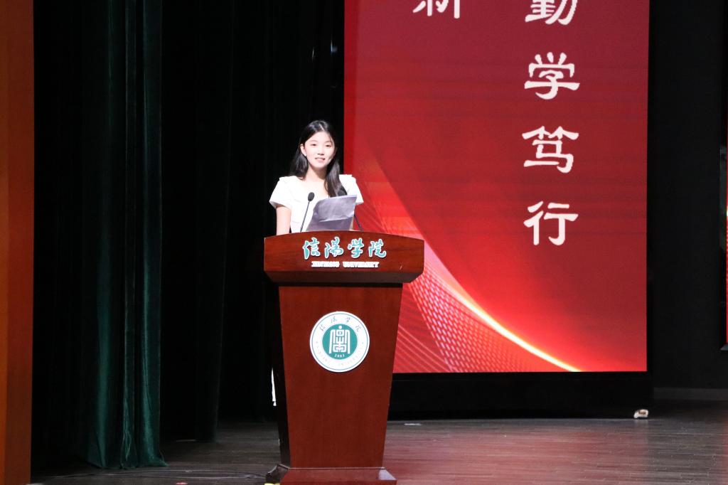 在校生代表、河南省师德演讲比赛三等奖获得者、2023级小学教育本科2班李云鹤同学在发言中表达了对即将踏上新征程的学长学姐的诚挚祝福与依依不舍,祝愿学长学姐们此去繁花似锦,未来可期。