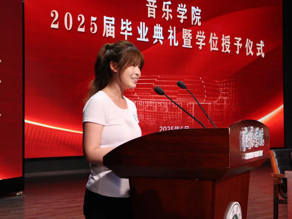 6月4日,音乐学院2025届毕业典礼暨学位授予仪式在音乐厅举行。副校长王志华出席大会。学院党总支书记郝昊、副院长杨辉、专家代表、教师代表及2025届毕业生参加了大会。郝昊主持了大会。