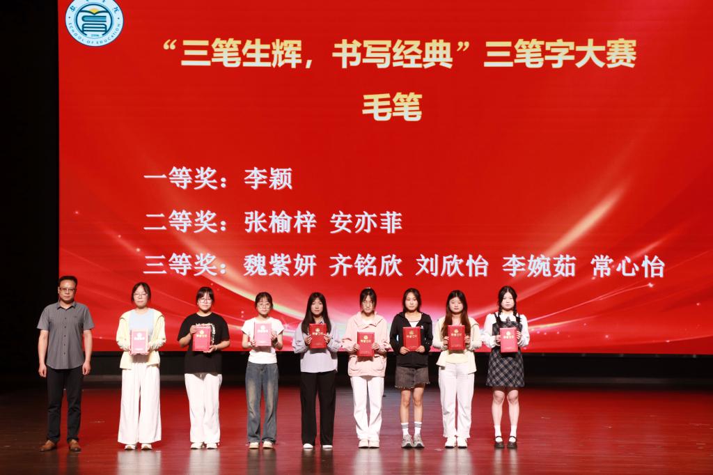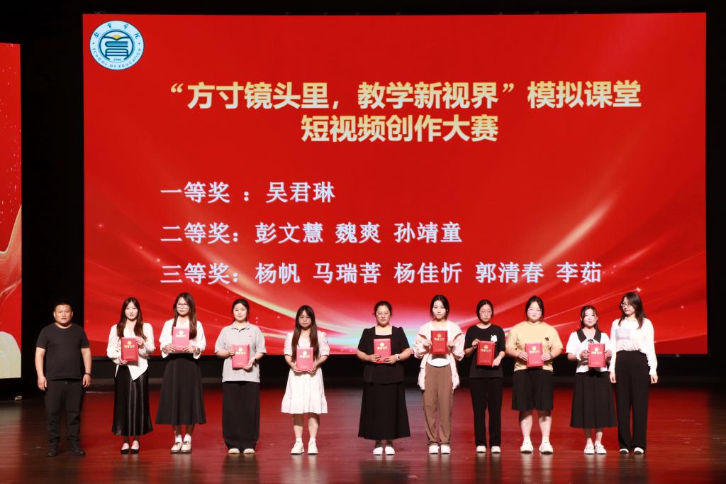 中场演出同样亮点频现。原创舞蹈《水龙吟》尽显古典韵味;河南省师范类专业毕业生技能比赛一等奖示范课《不完美也能美》引发对美的思考。中场节目结束后,第二场颁奖典礼接踵而至。名誉院长、党总支书记刘颖方、副院长段海丹、特聘教授赵国权分别为教师技能、歌曲、舞蹈以及师德演讲大赛的获奖者尚晓宇、刘亿苹、吴君琳等三十人颁发荣誉证书,并一同合影留念。