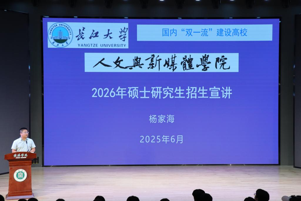 长江大学人文与新媒体学院副院长杨家海从招生学科分布、师资力量、科研平台、人才培养特色等方面介绍了长江大学人文与新媒体学院。他还向同学们介绍了该校的奖学金政策,展示学校的人文关怀。会议最后,杨副院长希望同学们能够积极备考,真诚祝愿考研学子能够成功上岸,考上自己心仪的目标院校。