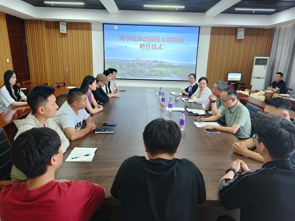 凝聚校友力量,共谱发展新篇。为进一步加强校友工作,汇聚校友智慧与力量,共同推动学院事业发展,6月6日下午,商学院在715会议室举行2025届校友联络员座谈会暨聘任仪式。商学院党总支书记胡秀云,副院长李毓、吴新静,学工干事花端阳,毕业班辅导员及新聘校友联络员代表出席仪式。仪式由花端阳主持。