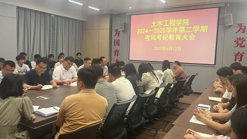 为进一步加强考风考纪教育,营造公平公正的考试环境,6月12日下午,土木工程学院在理工楼112会议室召开了2024—2025学年第二学期考风考纪教育大会。学院名誉院长鲍鹏、党总支书记徐远东、教学副院长杨子泉出席了会议,学院班子成员、全体辅导员、院学生会全体成员及各年级各班班长参加了会议。会议由徐远东主持。