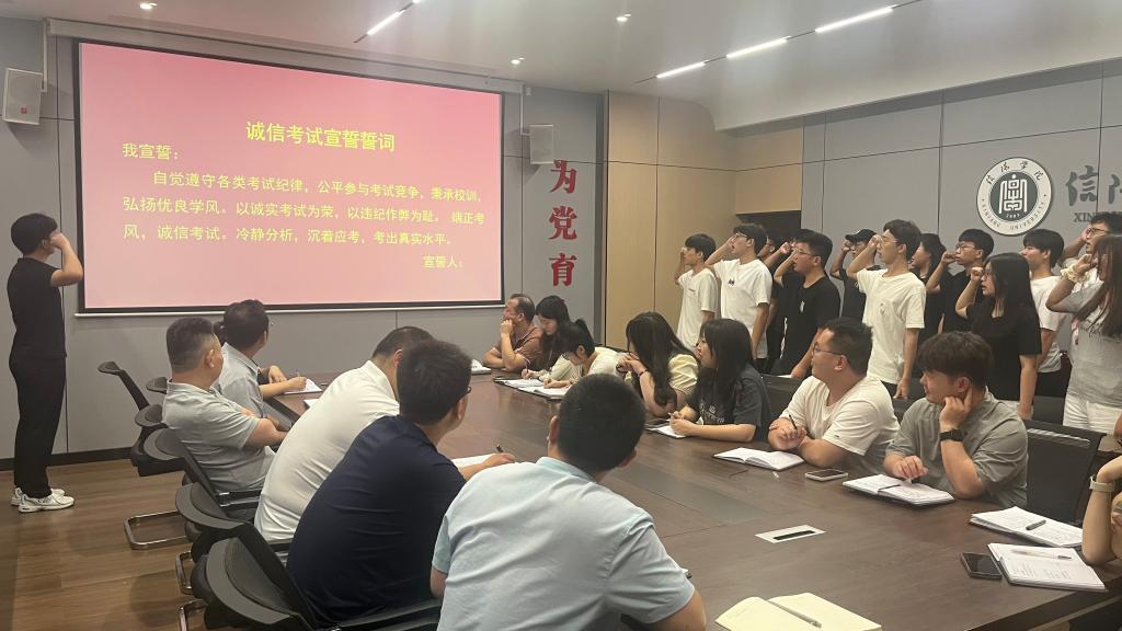 随后,第十六届团总支副书记徐明辉作为学生代表带领全体学生干部进行考风考纪承诺宣誓。