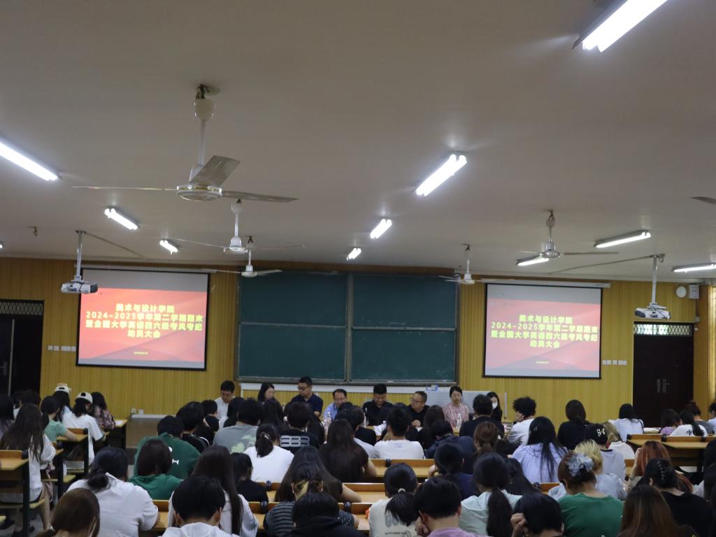 为进一步做好考试工作,营造良好的考试氛围,美术与设计学院于6月13日中午在艺术楼101教室,召开2024—2025学年第二学期期末考试暨大学英语四、六级考试考风考纪动员会。学院领导班子成员、教学管理人员及团总支、学生会、学委会、教学信息员代表参加了会议。会议由教学秘书周连峰主持。