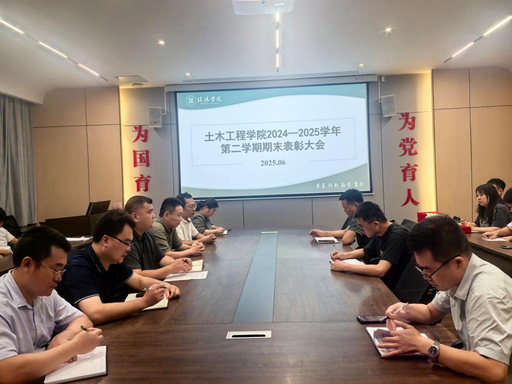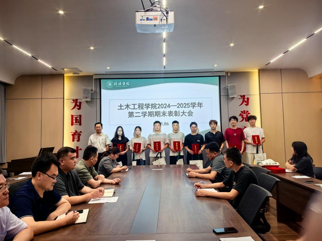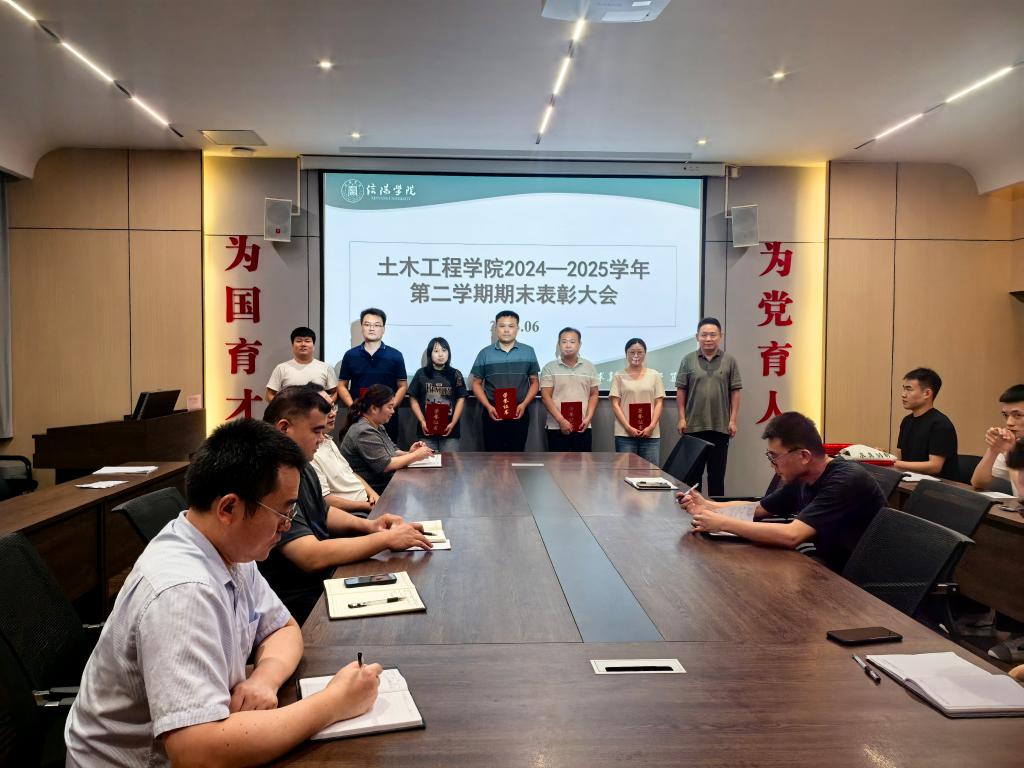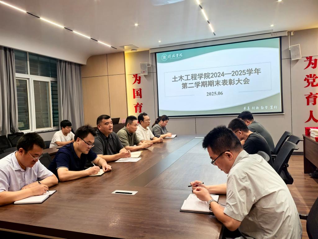 为激励优秀,表彰先进,6月26日下午,土木工程学院在理工楼112会议室召开了2024—2025学年第二学期期末表彰大会。学院名誉院长鲍鹏、党总支书记徐远东、教学副院长杨子泉、行政秘书郗利选、教学干事王亮、学工干事徐超、全体辅导员及获奖师生参加此次表彰大会。会议由徐远东主持。