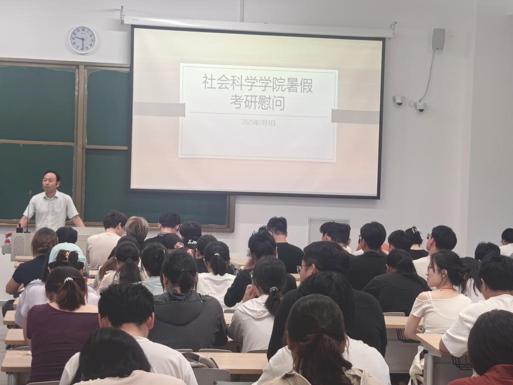 炎炎酷暑,挡不住考研学子求知若渴的脚步,为深入了解暑期留校备考学生的实际状况,传递学院深切的关怀与支持,鼓舞士气,7月3日上午,社会科学学院在教二楼组织开展2026届暑期留校考研学生座谈会暨慰问活动。学院党总支副书记胡志国,教学副院长寇博文,考研负责教师张奎、陈杰,学工负责人陈苗苗及全体辅导员和留校学生参加了此次活动。