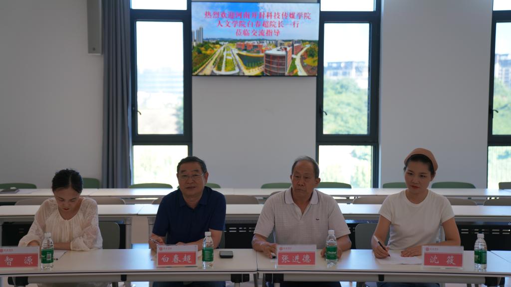 座谈会上,文学院党总支书记李赟首先对白春超院长一行的到来表示热烈欢迎,并简要介绍了我院在人才培养、专业建设、学生就业等方面的基本情况。白春超院长围绕“新文科背景下应用型人才培养创新”主题,从学科交叉融合、实践教学体系、校企协同育人、学生就业渠道拓展等方面分享了科技传媒学院的特色经验。双方还就学生就业指导、访企拓岗等议题展开深入研讨。