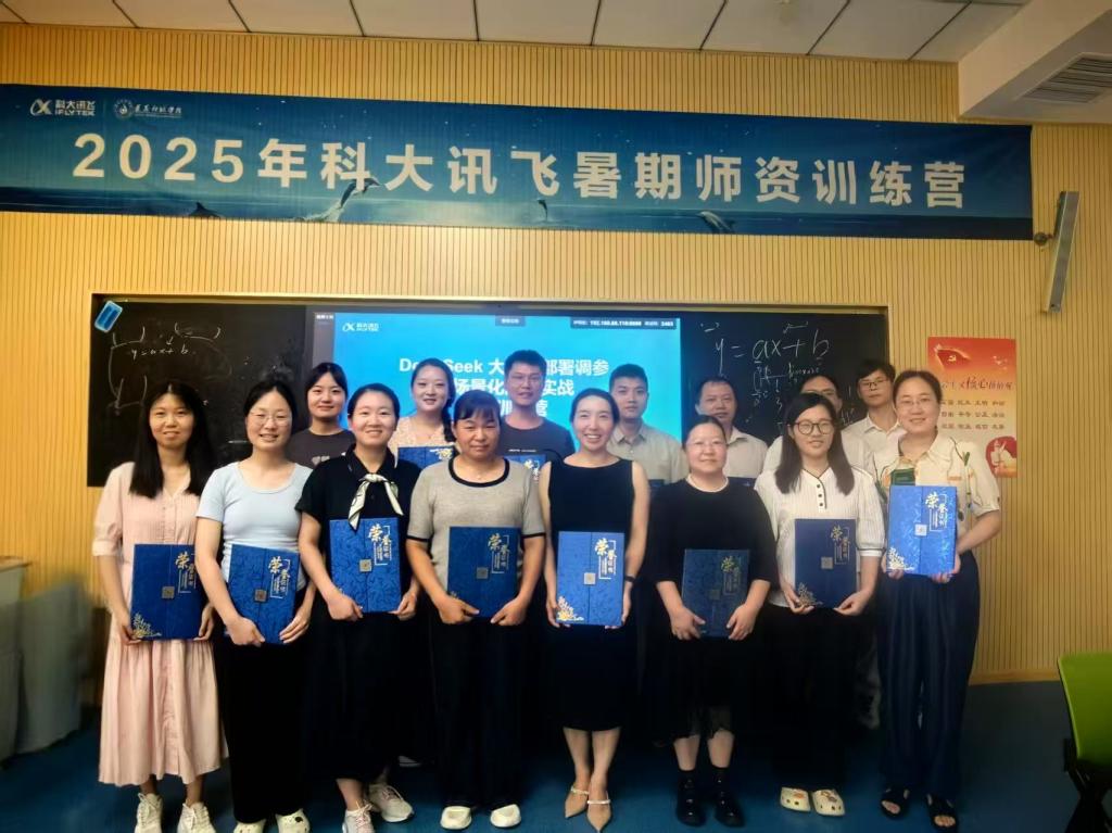为了进一步加强师资队伍建设,提升教师聚焦技术前沿及其应用实践能力,7月23—27日,大数据与人工智能学院组织选派了17位教师参加了由科大讯飞股份有限公司主办、遵义师范学院承办的“DeepSeek大模型部署调参与场景化应用实战”暑期师资训练营。本次活动由智慧教育大数据现代产业学院院长贾彦茹带队。