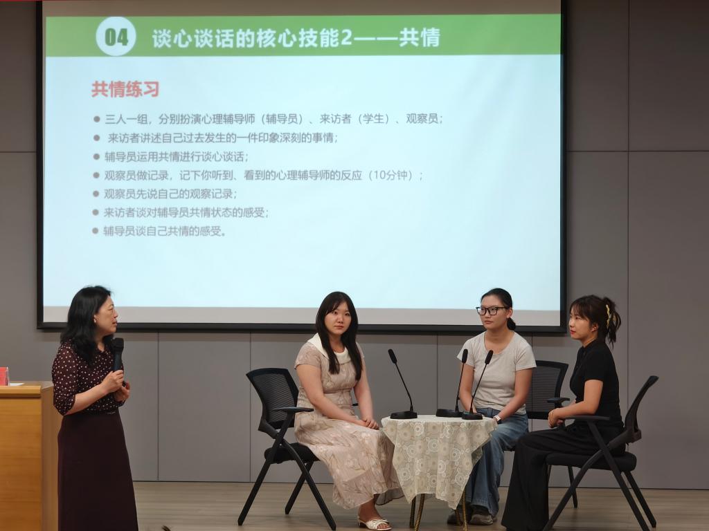 培训伊始,学校特邀郑州大学心理健康咨询中心主任刘慧瀛教授担任主讲嘉宾,于8月23日、24日在图书馆101教室开展《高校辅导员深度谈心谈话技能培训》专题授课。刘慧瀛教授深耕高校心理健康教育领域多年,凭借丰富的理论储备与实践经验,围绕大学生心理健康问题识别、心理危机干预流程、常态化心理疏导方法等核心内容展开讲解,通过典型案例剖析、互动问答等方式,帮助参训辅导员精准把握当代大学生心理特点,掌握科学有效的心理健康教育工作技巧,为构建“全员、全程、全方位”心理育人体系提供专业指导。