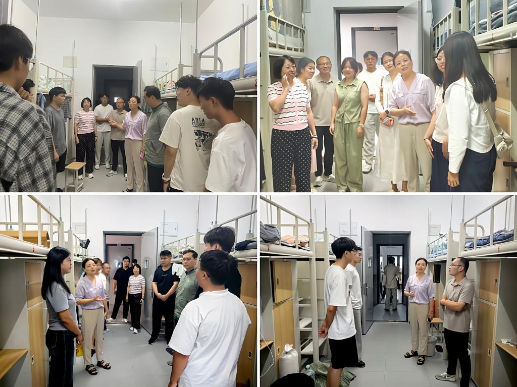 9月7日下午,商学院党总支书记胡秀云、副院长吴新静带领学工干事花端阳及全体新生辅导员,深入2025级新生宿舍开展走访慰问活动。此次走访以“了解需求、传递关怀、助力融入”为核心,通过与新生面对面交流,切实掌握其入学适应情况,为新生快速融入校园生活保驾护航。