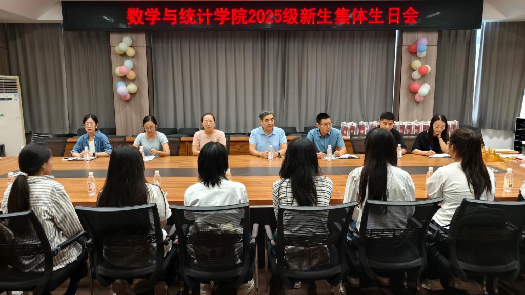 为让2025级新生快速融入学院大家庭,感受集体温暖,9月9日上午,数学与统计学院精心策划并举办新生集体生日会。数学与统计学院院长俞迎达、党总支书记郭二军、学工干事田媛及全体辅导员参加了生日会。生日会由郭二军主持。