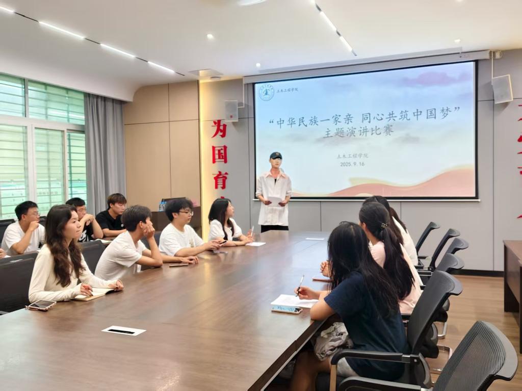 为深化民族团结进步教育,铸牢中华民族共同体意识,9月16日晚,土木工程学院在理工楼112会议室成功举办了“中华民族一家亲,同心共筑中国梦”主题演讲比赛。学院辅导员朱徐迪、院学生会主席团成员及20余名参赛选手参加了此次比赛。