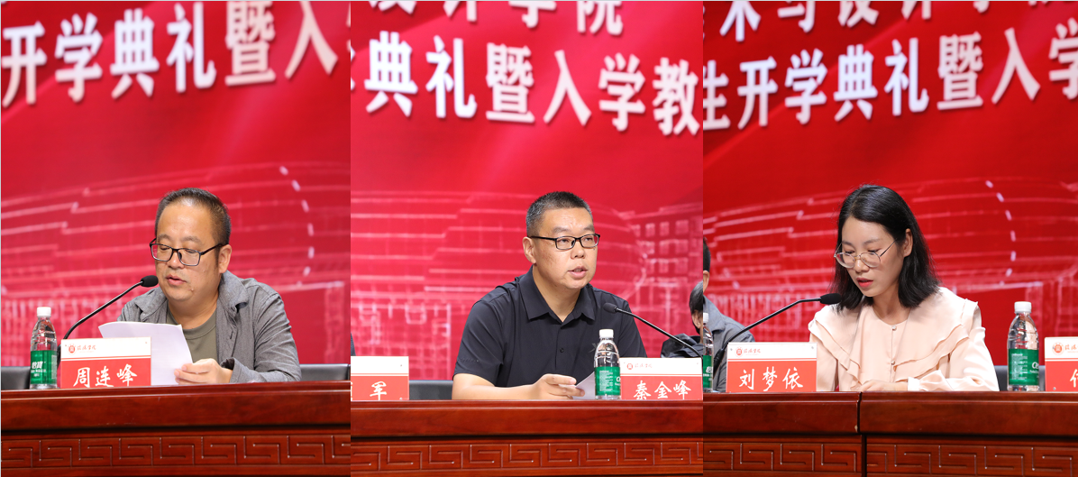 教学秘书周连峰做了专业介绍、解读了学位授予规定;学工干事秦金峰宣读了《美术与设计学院2025级新生入学教育实施方案》;行政干事刘梦依宣读了学院表彰文件。