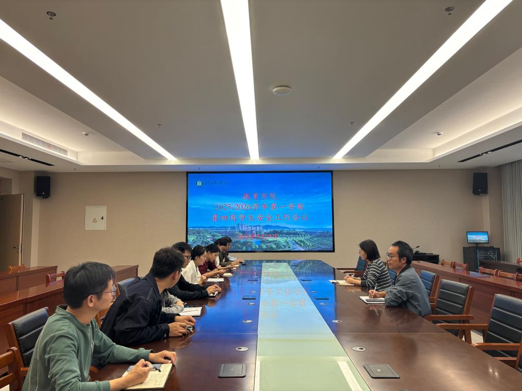 为全面做好国庆假期学生安全管理,筑牢学院安全防线,9月29日下午,教育学院在教三楼521召开2025—2026学年第1学期第四周学生安全工作例会。党总支书记刘颖方、学工干事胡超及全体辅导员参加会议。
