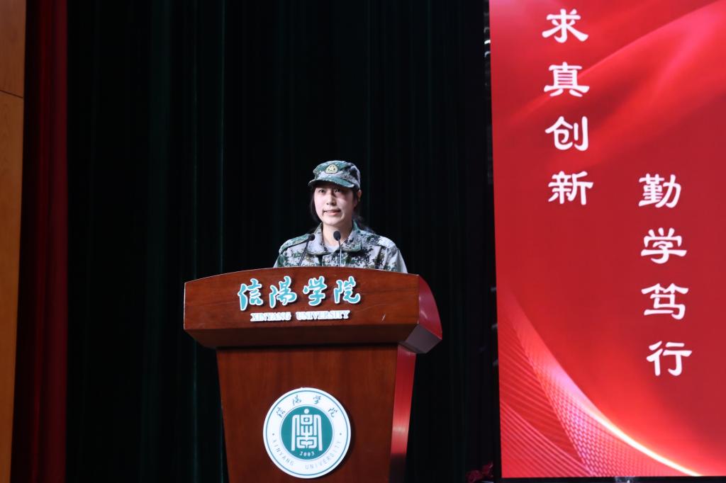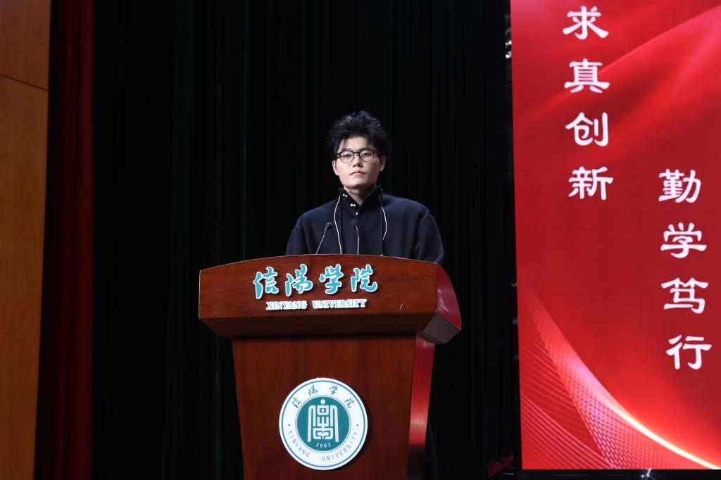 老生代表河南省优秀学生干部、第六届全国高校计算机能力挑战赛C语言赛道全国二等奖获得者、2023级计算机科学与技术本科一班安朝辉同学分享了他的学习和成长历程。他鼓励学弟学妹保持“天真乐观”的勇气和求知欲,将挑战视为游戏,珍惜师友,勇敢绘制属于自己的大学地图,开启无悔的探索之旅。