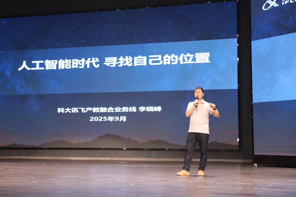 第二阶段,科大讯飞高级人工智能架构工程师李晓峰以“人工智能时代,寻找自己的位置”为主题为新生做了入学教育报告,报告会由教学副院长毛凤翔主持。