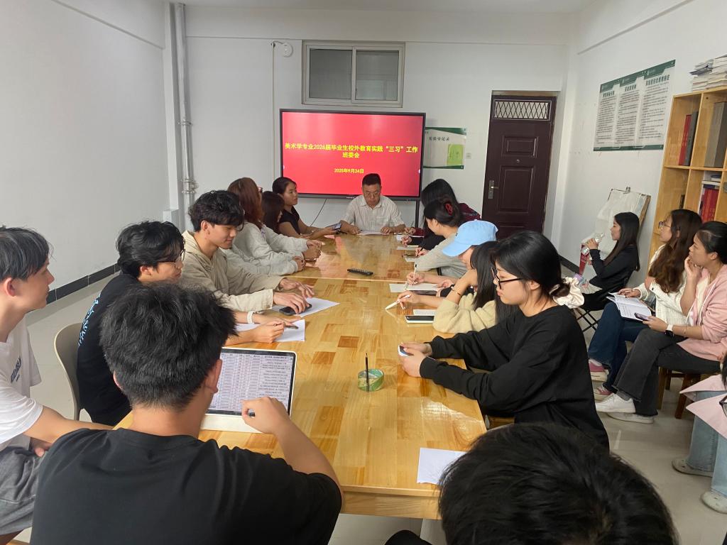 9月28日下午,美术学专业在艺术楼101室召开美术学专业2026届毕业生校外教育实践“三习”动员大会暨安全教育会。美术学教研室主任项军,辅导员老师杨小会,实习指导老师、带队老师,美术学专业2026届全体学生参加了本次大会。会议由周扬主持。