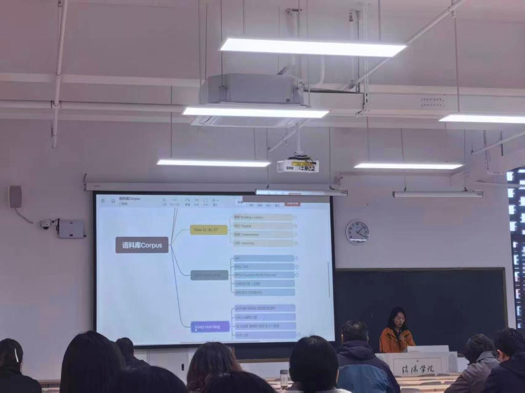 分享会上,张孟杰老师围绕语料库展开系统化讲解,从语料库的定义入手,清晰阐释其在优化外语教学方法、提升科研精准度等方面的核心作用。针对教师们关注的实践环节,她结合生动案例,详细拆解语料库创建过程中的建库、标记、检索与分析步骤,让抽象的技术流程变得直观易懂。同时,张老师也客观分析了语料库应用的局限性,并强调持续学习人工智能技术的重要性,为教师们指明了能力提升方向。